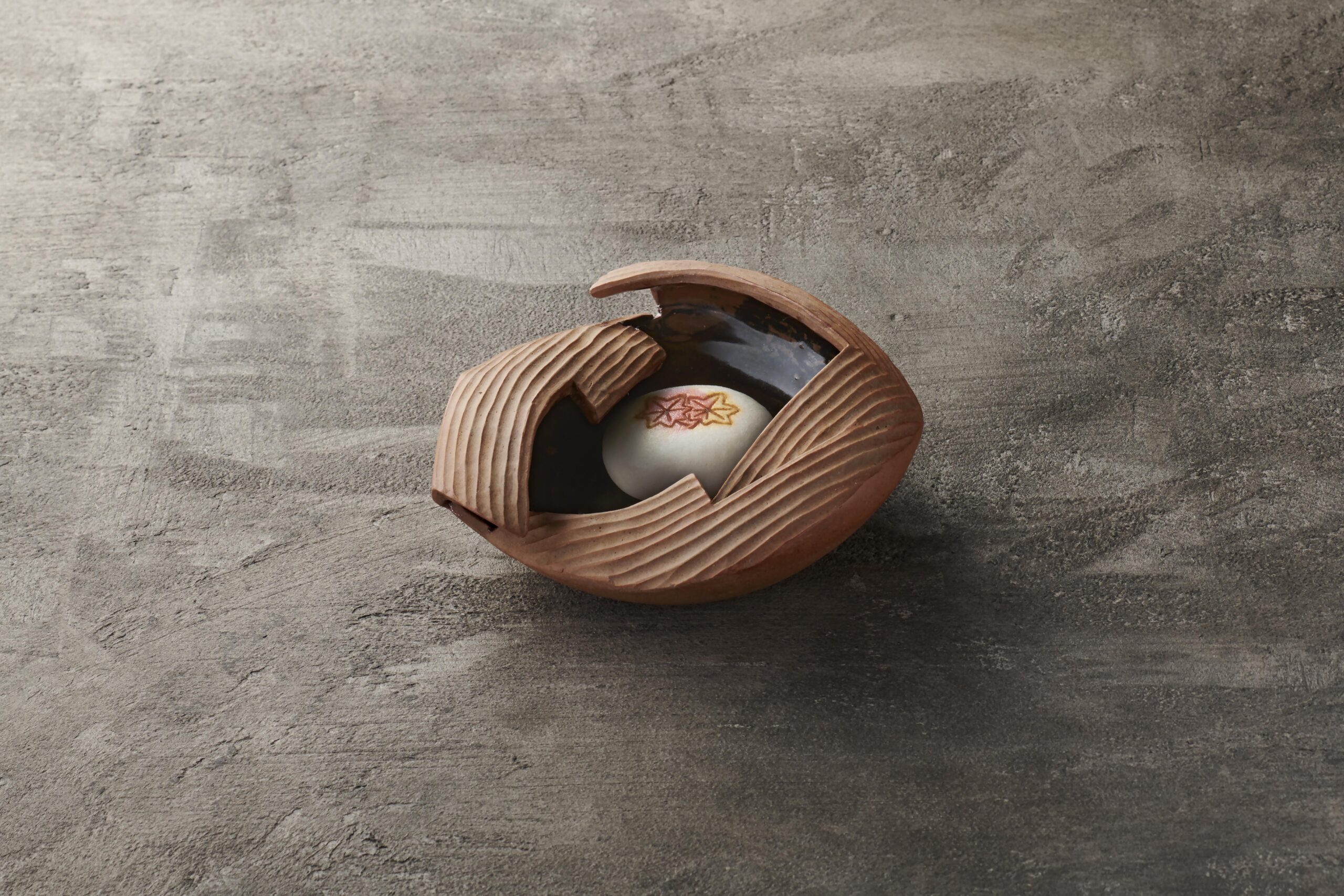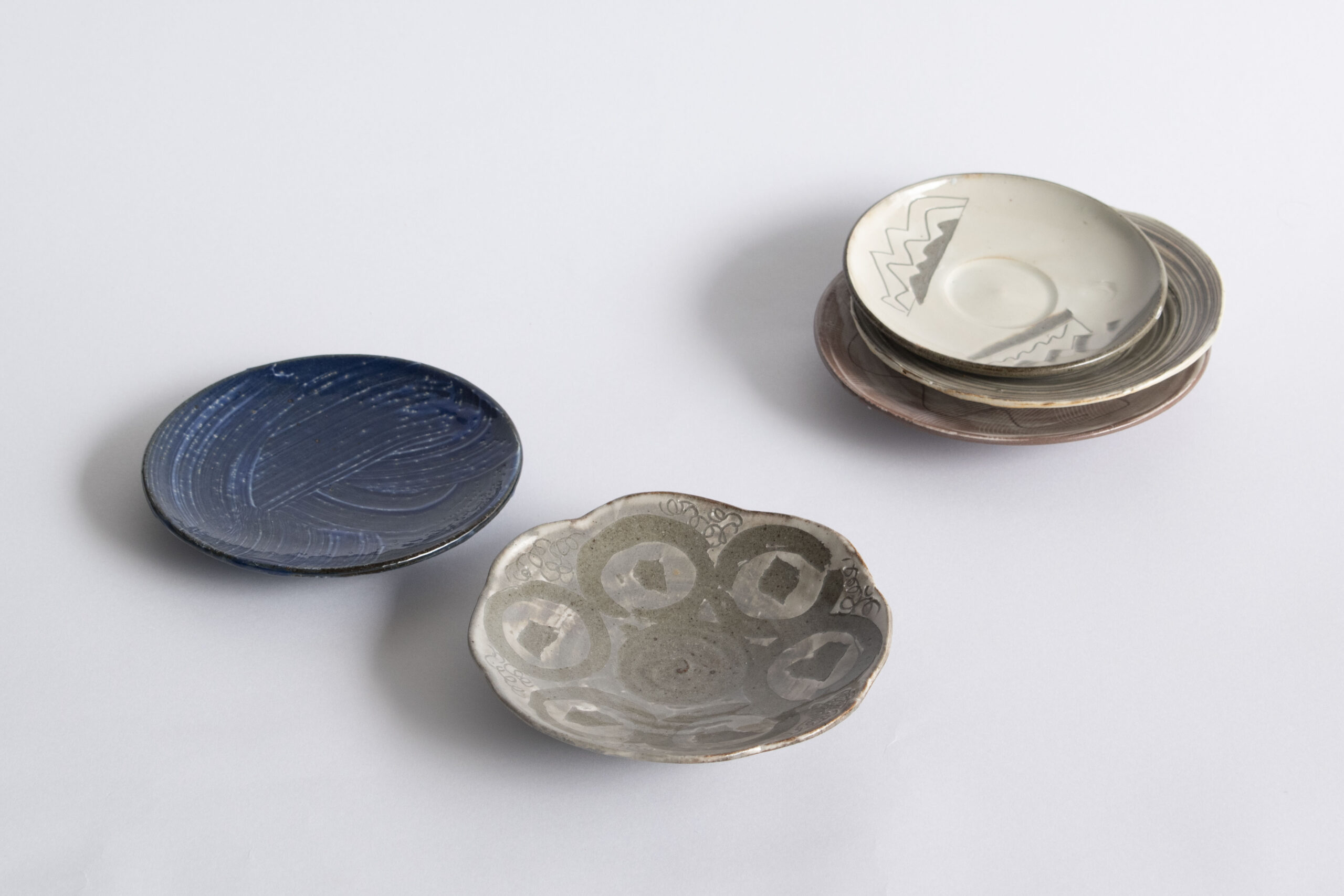 本展の作品は、2025年の夏休みに、学生が各地の和菓子店を巡り、知識を深め、和菓子と器との関係を考えるところからスタートしました。制作では、さまざまな陶芸技法に挑戦しつつブラッシュアップを重ねました。16人それぞれの考える「うつわと和菓子」を、ぜひご覧ください。